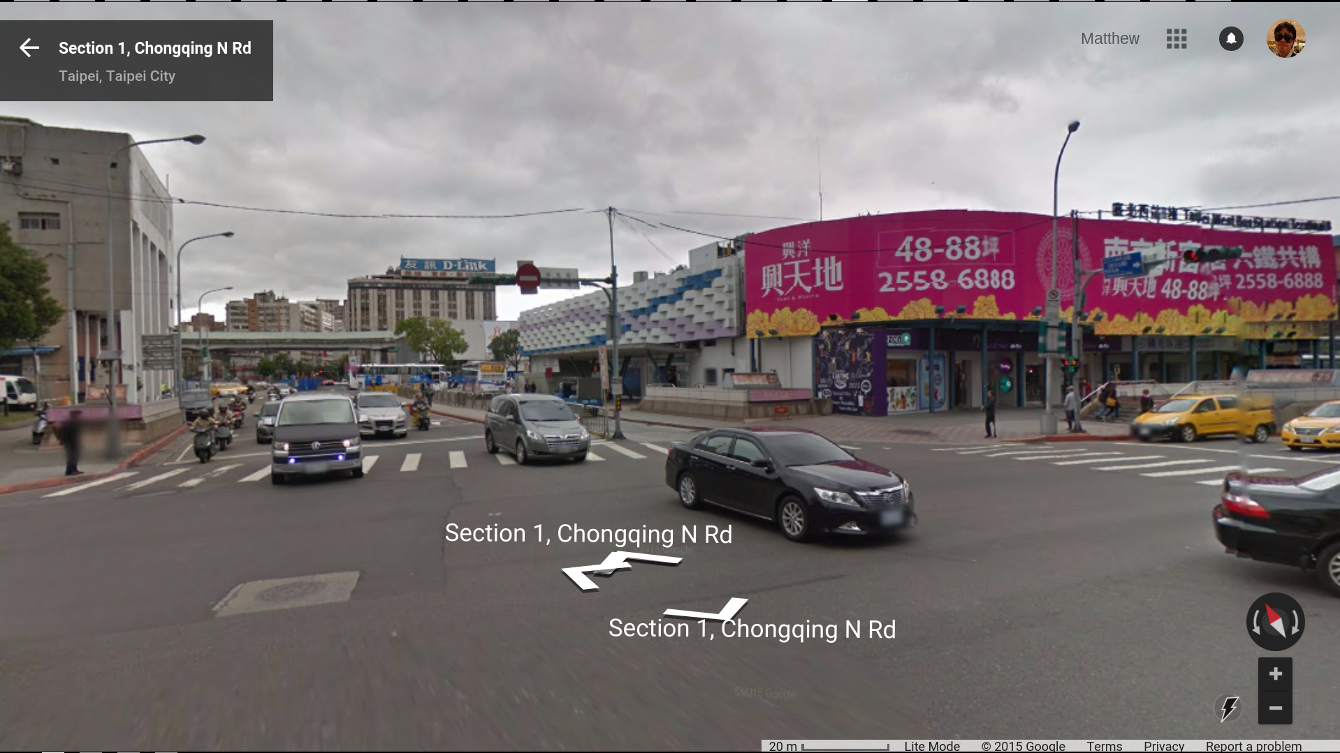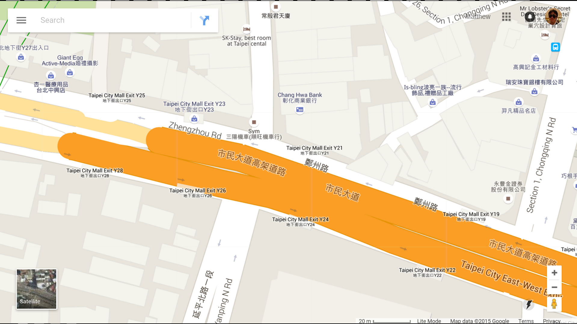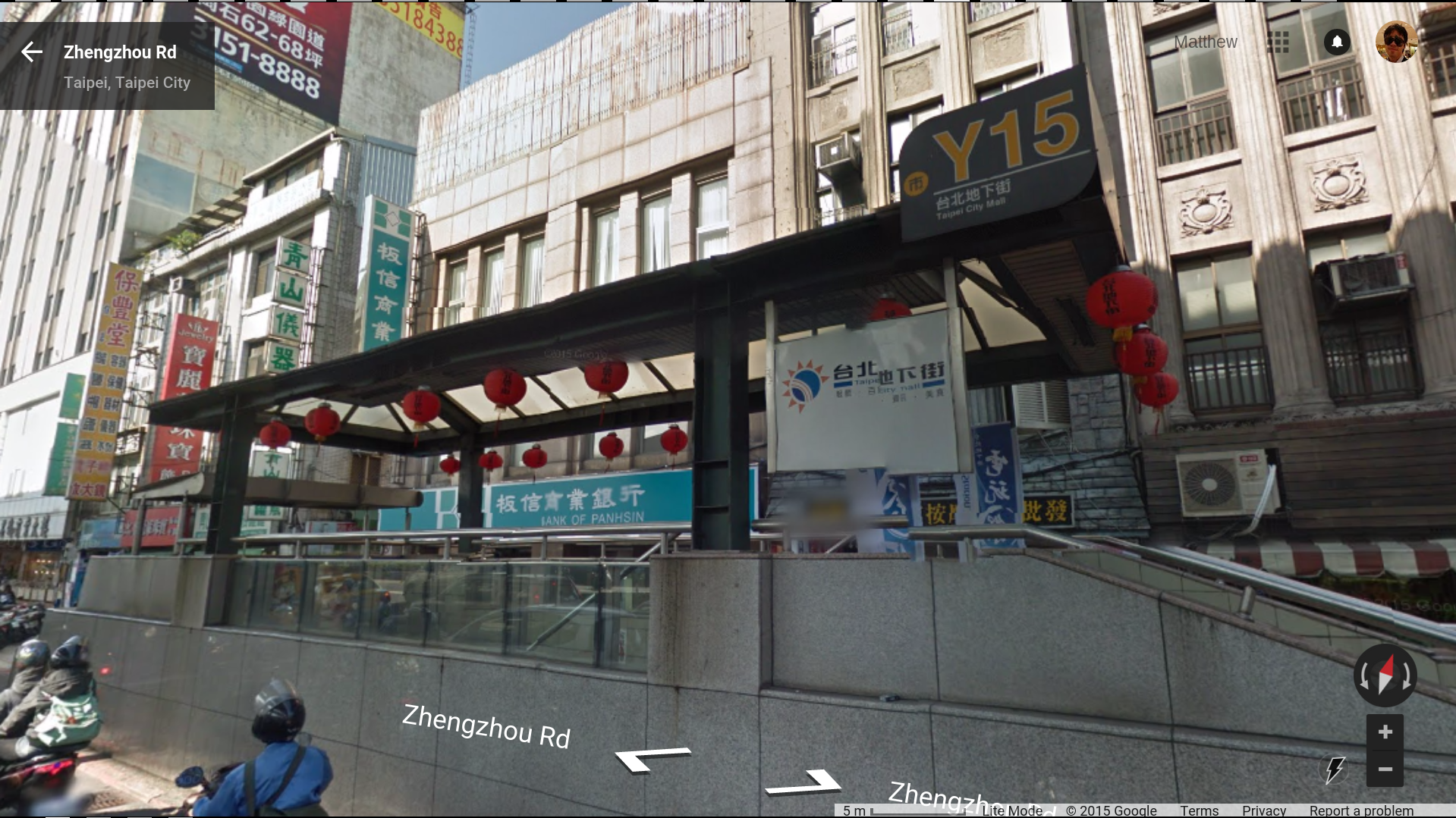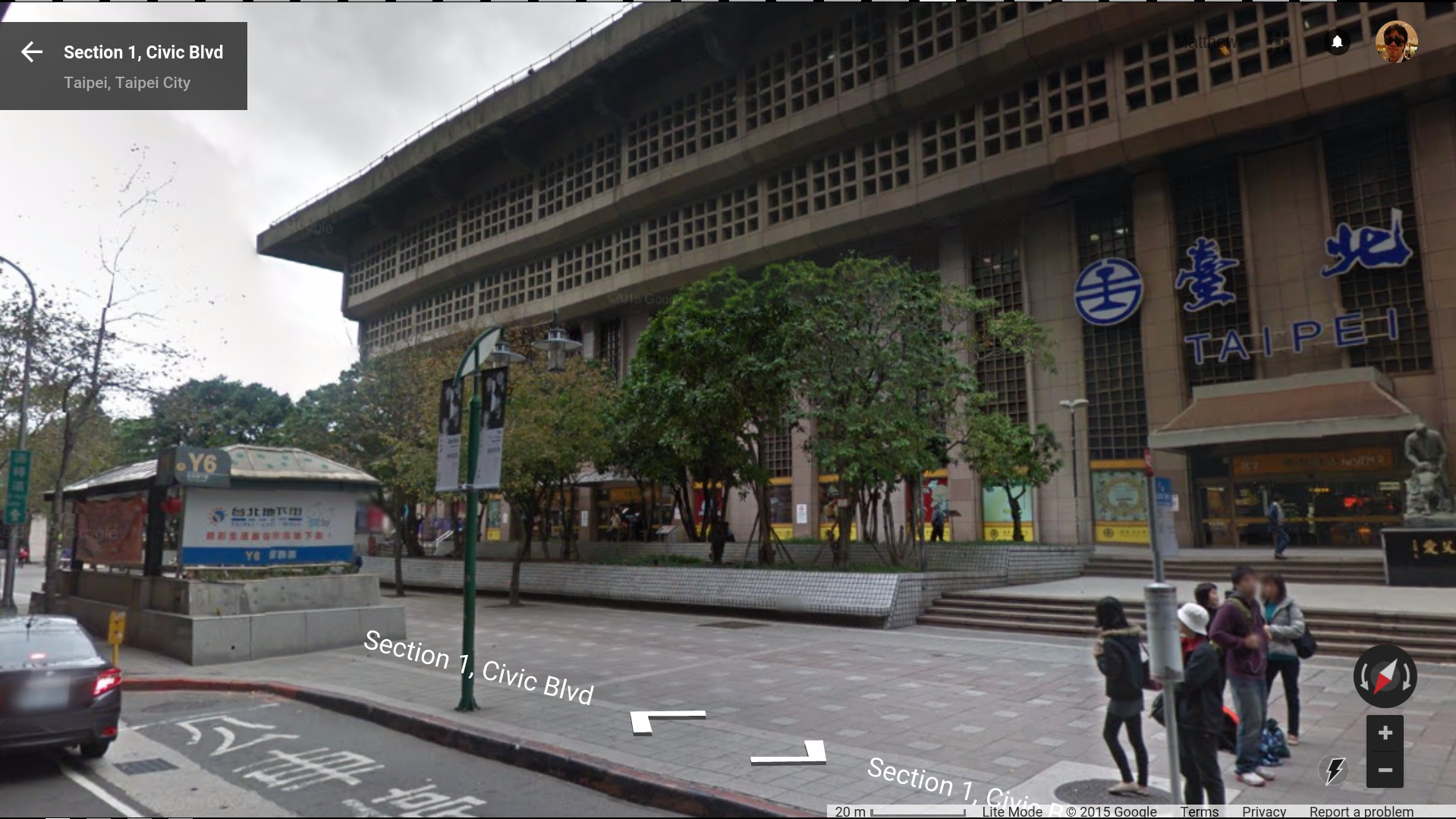 Exit Y1 (looking west). Taipei Station on left, across the street from elevated highway.