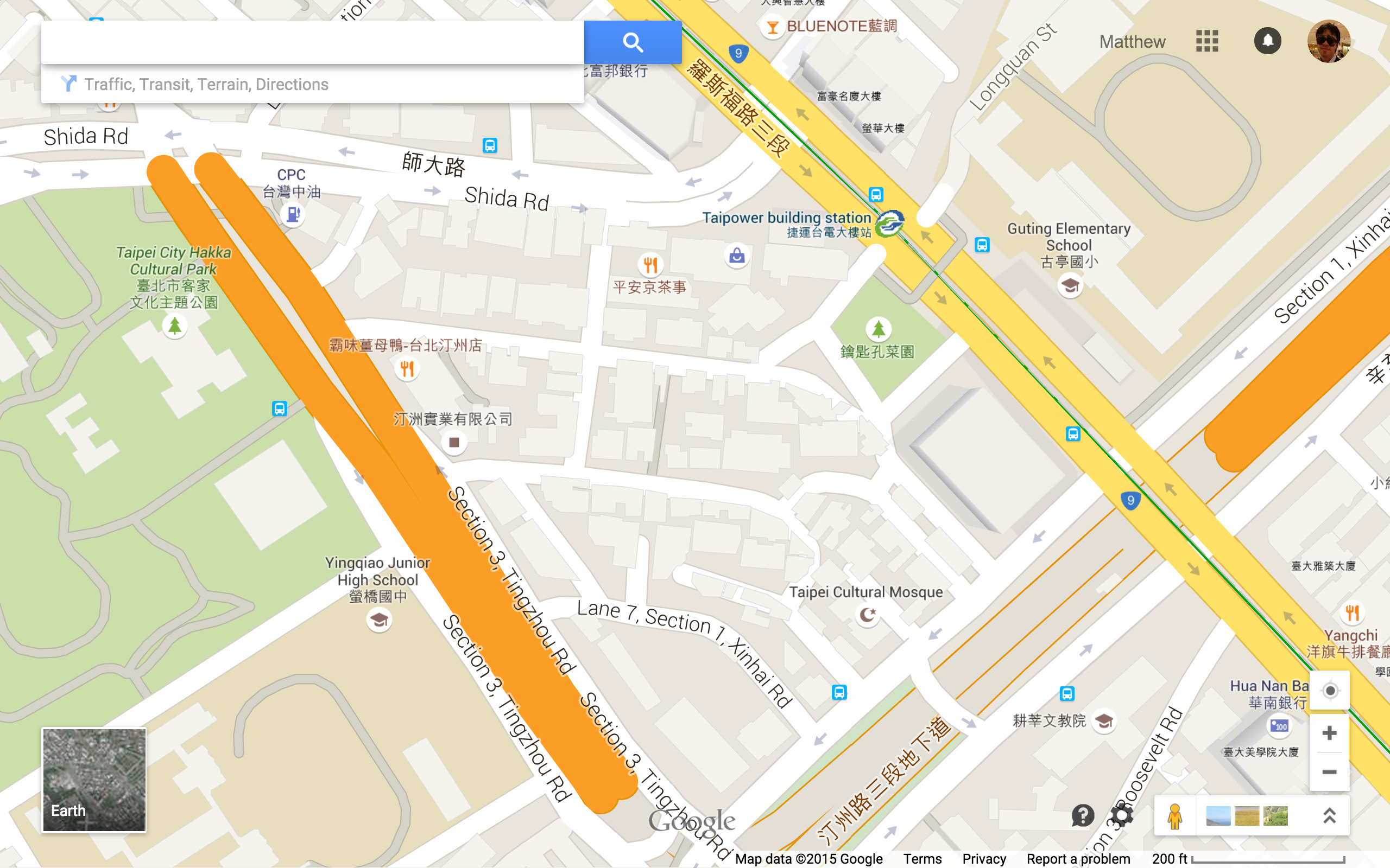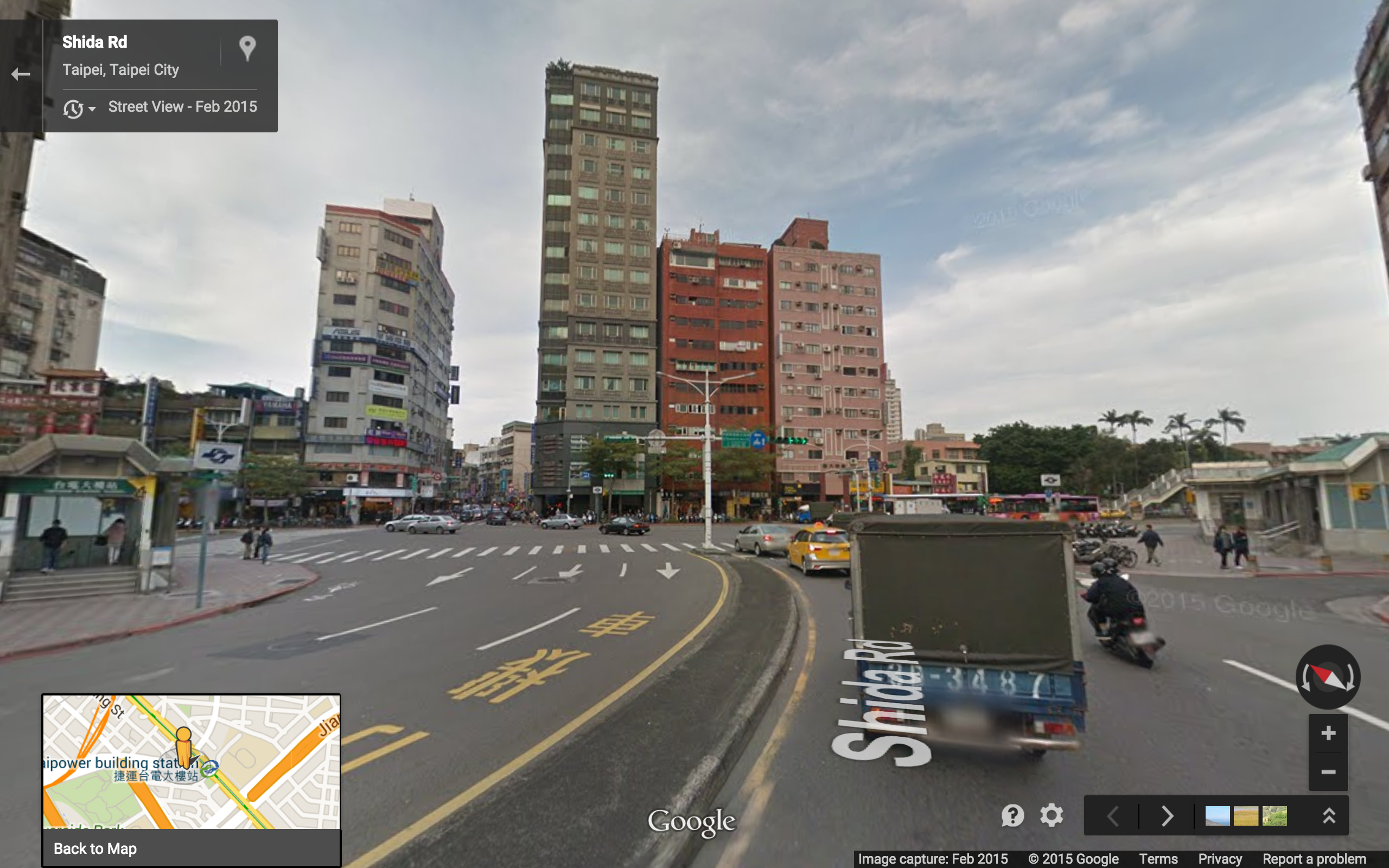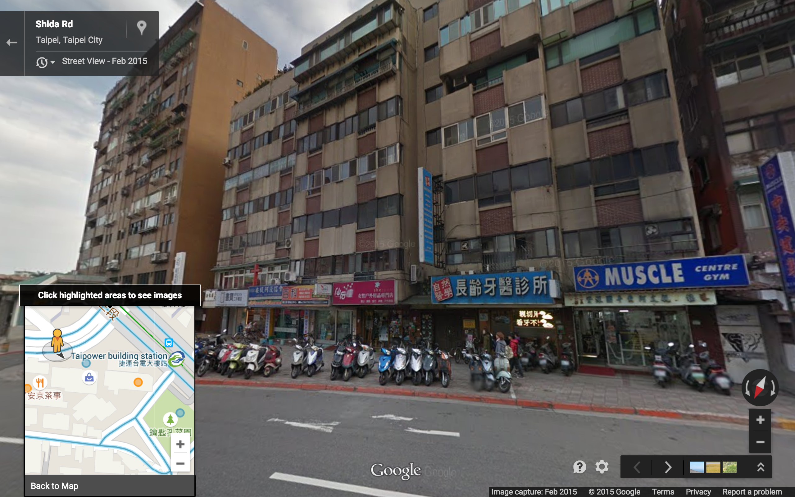 The neighborhood which I refer to here as “west of Taipower station” is defined very crisply by Roosevelt Road (7 lanes), Shida Road (6 lanes), Xinhai Road (8 lanes + immense median), and Tingzhou Road (10 lanes):