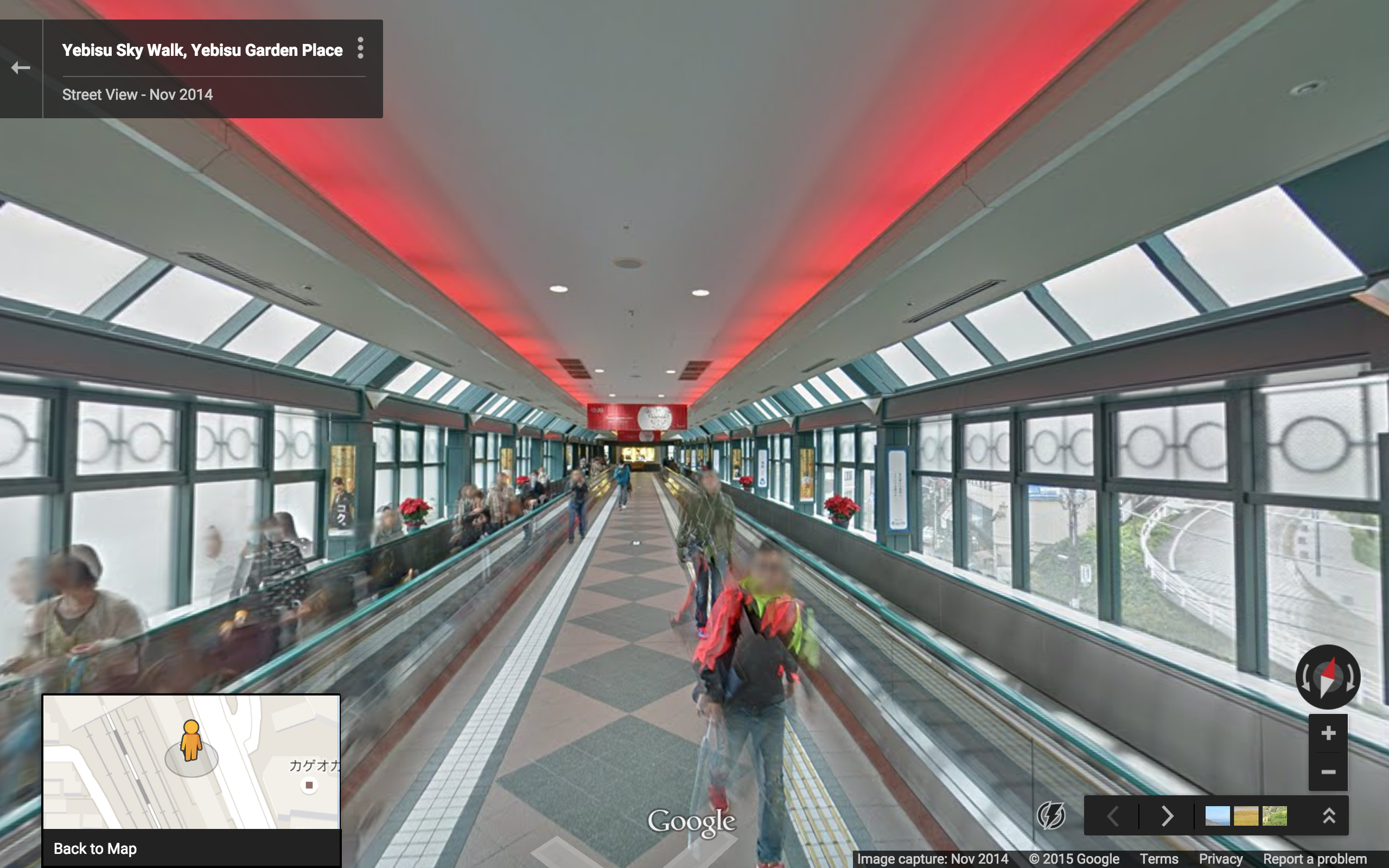 Looking north. The south entrance to Ebisu Skywalk is straight ahead.