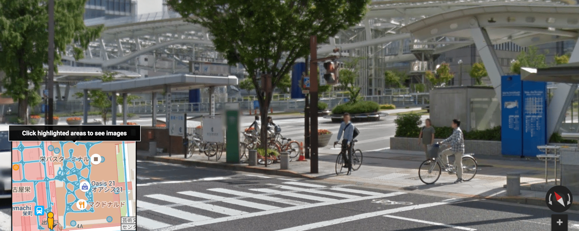 “Oasis 21” is an enclosed bus terminal attached to an open-air shopping center. It is located at the intersection of two major subway lines (and the terminus of a third), and is directly connected to the large underground malls of the Sakae area (e.g. 森の地下街、クリスタル広場).