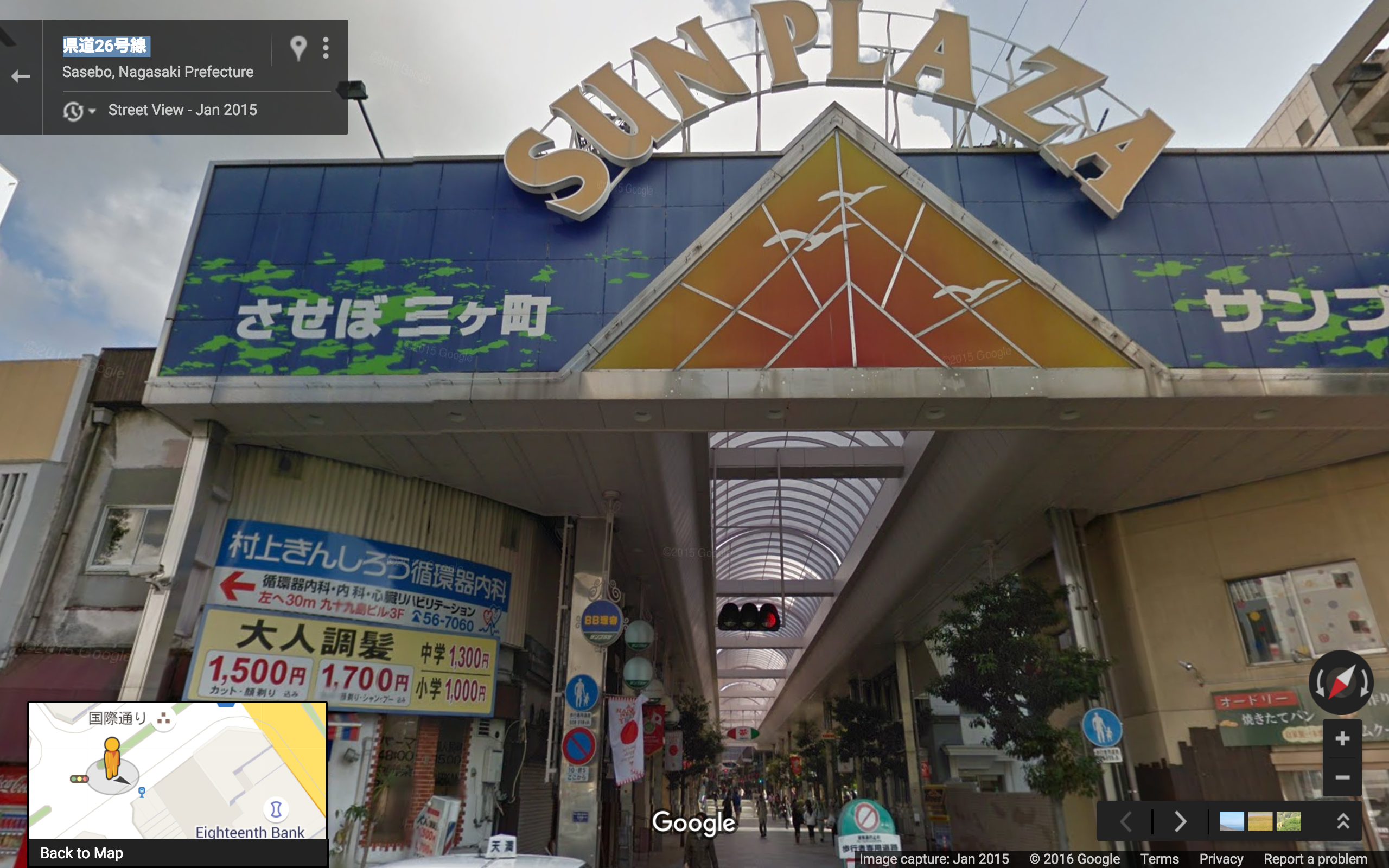 Sasebo is a small city with a vibrant commercial core. Most stores and businesses are within a couple blocks of the 20 minute walk shown below:
