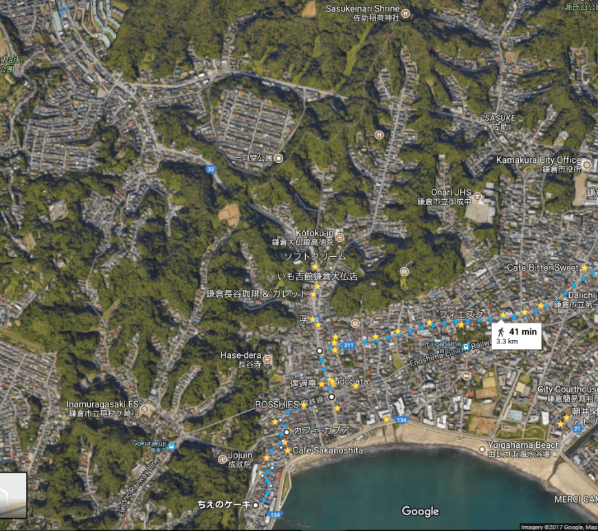 The walkability of central Kamakura is defined by three north-south spines: The Komachi-Dori Shotengai (nighttime walk-through video) Car-free Hokoten every day from 4 pm to 7 pm (Sundays and holidays 10 am to 4 pm). Stretches 590 meters (1,940 feet) north from Kamakura Station (JR East and Enoshima/Enoden lines) to Hachimangu Shrine. The Onari-Dori Shotengai (daytime walk-through video) Car-free Hokoten every day from 4 pm … Continue reading Walking in Kamakura